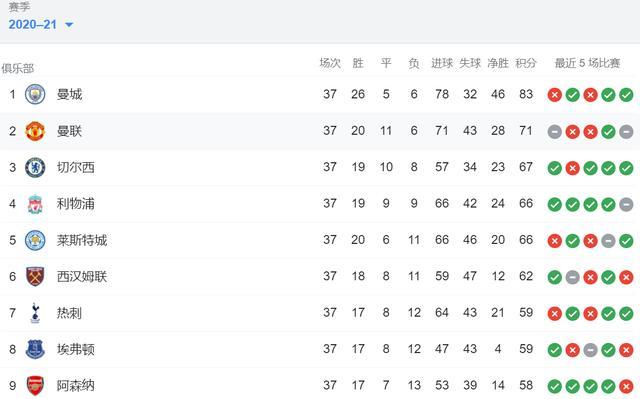 英超联赛只剩1轮,利物浦赢球后挤下莱斯特城重回前四,两队目前积同分,但利物浦的净胜球数据更佳。