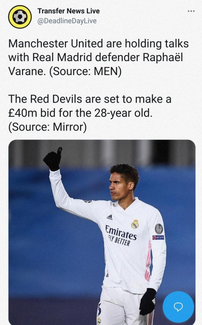 178直播讯 北京时间5月15日,据英国《镜报》报道,曼联希望引进皇马中卫瓦拉内,准备报价4600万欧元。