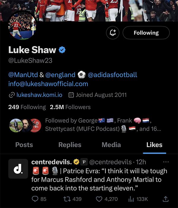 眼尖的球迷很快发现,曼联左后卫卢克·肖竟然点赞了这一评论,虽然他很快撤销,但已经被球迷截图。卢克·肖不得不公开回应,理由当然是毫无新意的「手滑」。卢克·肖宣称:「别傻了,我显然不是故意的[捂脸]。」