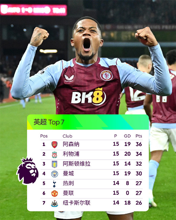 值得注意的是,在英超15轮后,维拉已经击败了热刺、切尔西、曼城,只是客场0-3输给了利物浦。而下轮比赛,埃梅里将会再次在主场迎来另外一至BIG6强队——阿森纳。枪手还是埃梅里的老东家,那么埃梅里能否狙击老东家,保留住本赛季英超争冠悬念呢?我们拭目以待。