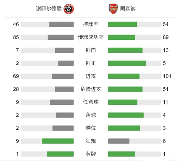 全场比赛结束,阿森纳客场3-0完胜谢菲尔德联,枪手终结各项赛事连续4场不胜。