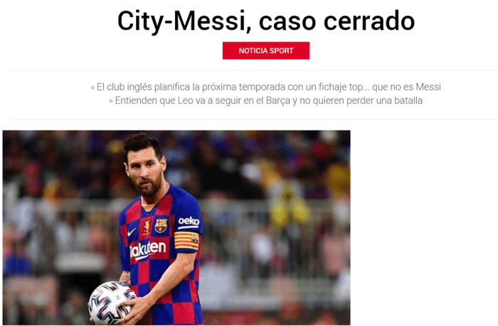 去年夏天,曼城确实有兴趣引进梅西,但由于梅西被强留一年,曼城最终无缘得到这名球员。现在,曼城对梅西的兴趣已经变淡,俱乐部认为他们应该引进一名不同风格的球员,同时他们也知道梅西如今更有可能续约留队,所以俱乐部无意强行尝试挖角。