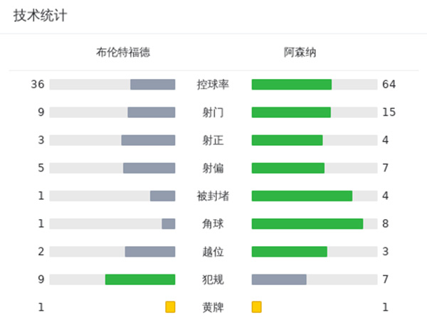 关键事件: 第88分钟,替补绝杀!萨卡右路传中到后点,哈弗茨跟进头球攻门弹地入网,布伦特福德0-1阿森纳!
