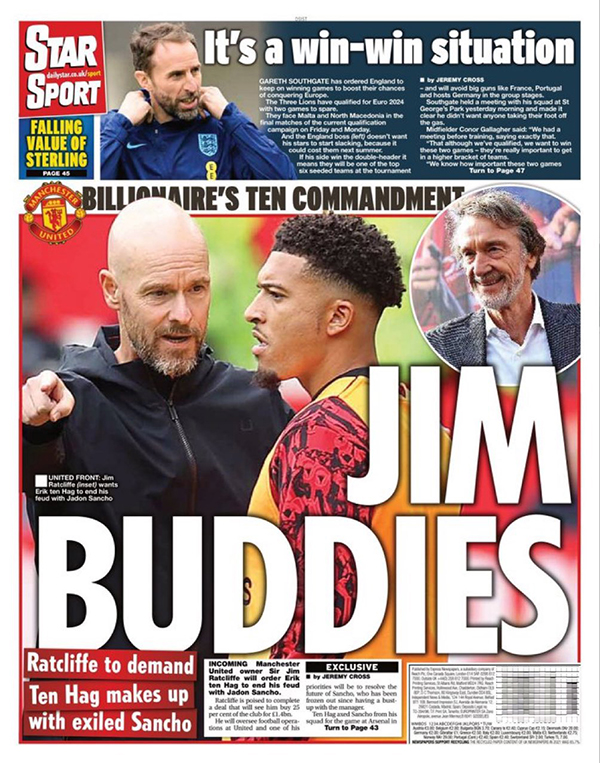 如无意外,拉爵将在本月内完成收购曼联少数股权的交易,可能是本周,但更可能下周官宣。他将获得俱乐部的足球管理权,而英媒披露,新老板上任后的三把火中,将包括勒令主帅滕哈格与球星桑乔和解这一项。