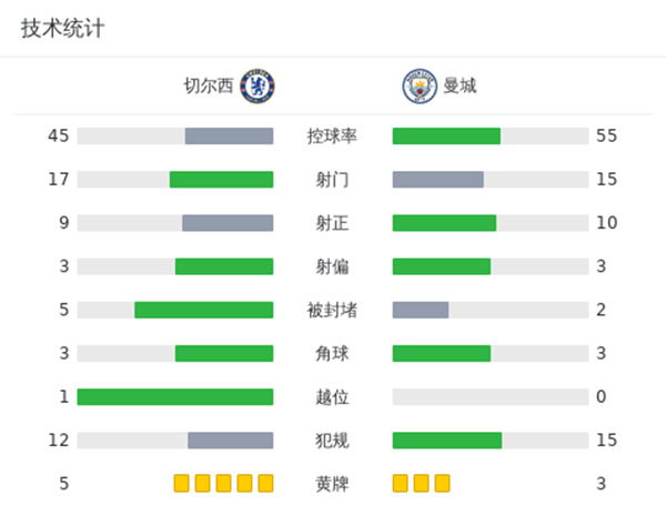 全场比赛结束,曼城4-4战平切尔西。
