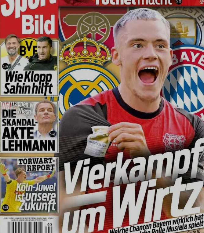178直播讯 德国《体育图片报》报道,皇马、曼城、拜仁等欧洲豪门争夺勒沃库森天才维尔茨,药厂为维尔茨标价至少1.5亿欧元。