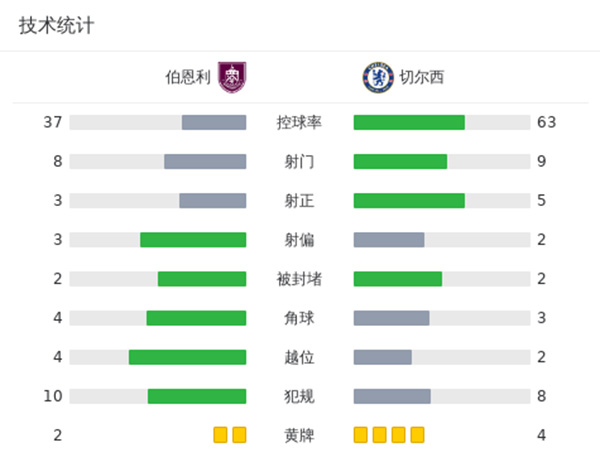 切尔西4-1伯恩利 斯特林造3球帕尔默传射杰克逊建功