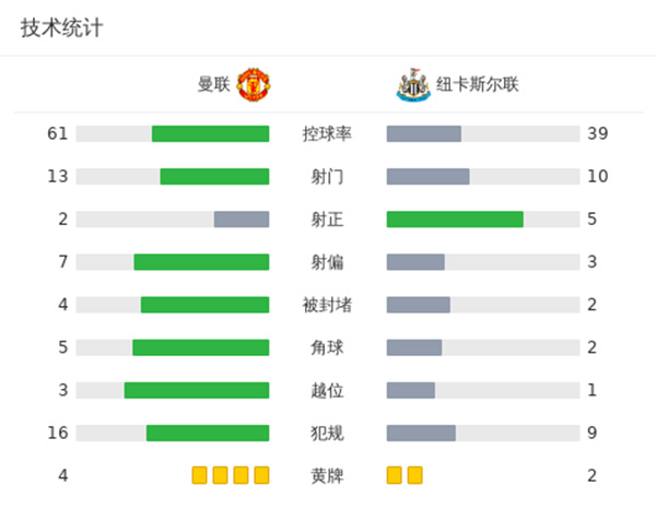 第35分钟,纽卡后场快发定位球后左侧下底传中,第一点马奎尔解围不远,外围霍尔迎球怒射建功,曼联主场0-2落后↓