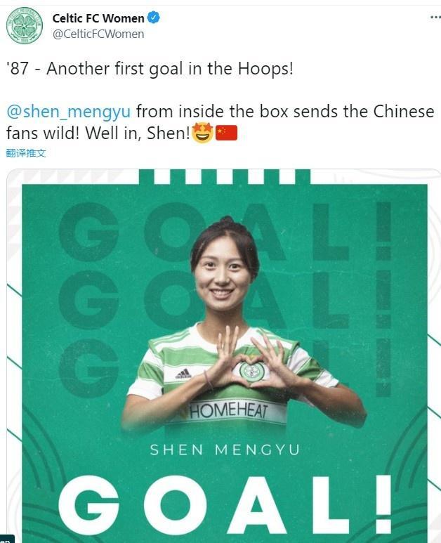 比赛第87分钟,中国留洋球员沈梦雨进球,收获留洋生涯首球!最终,帮助凯尔特人女足6-0战胜了对手。
