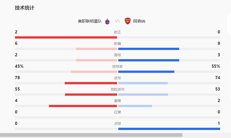 最终全场比赛结束,阿森纳5-0MLS全明星。