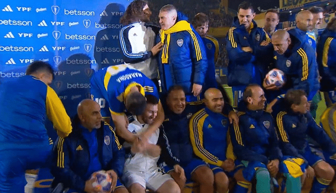 梅西进球之后,糖果盒的博卡球迷们疯狂庆祝,这是糖果盒球场极少出现博卡的球门被攻破,球迷们还庆祝的,毕竟梅西是大家的最爱。在里克尔梅的告别赛上,梅西取得进球,球迷们都很激动。
