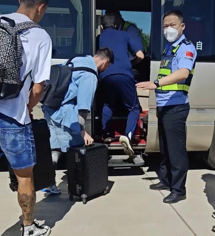 一下飞机后,梅西呼吸着第一口来自东方的口气,竟然咧嘴微笑起来。随后,他坐上摆渡车时,丝毫没有球王架子,自己提着行李箱上车。