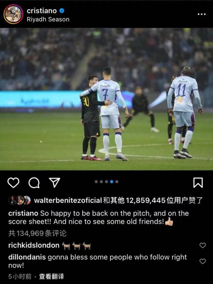 C罗写道:能重回赛场并再次取得进球我感到很兴奋,也很高兴能够见到一些老朋友。
