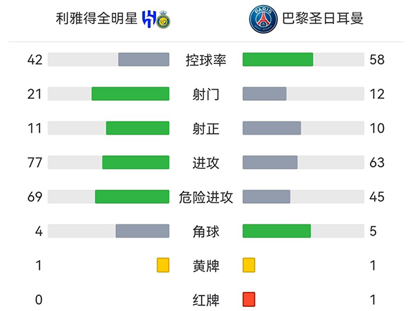 下半场补时6分钟,最终利雅得全明星4-5巴黎圣日耳曼。