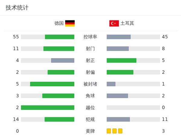 第49分钟,德国队打出反击,菲尔克鲁格在禁区中内切右脚低射近角破门!德国2-2土耳其↓