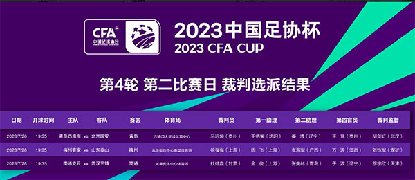其余比赛中,青岛西海岸主场对阵北京国安,贵州的马运坤担任主裁判,杜健鑫执法南通支云和武汉三镇的对决。