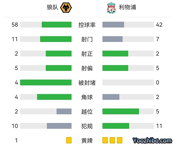 全场比赛结束,最终利物浦客场1-0战胜狼队晋级。