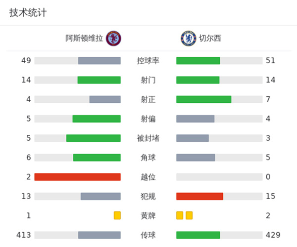 第21分钟,切尔西反击,马杜埃凯带球推进,随后传给古斯托,后者送出传中,门前杰克逊头球攻门得手,切尔西2-0阿斯顿维拉。