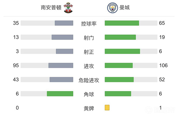 全场比赛结束,曼城4-1南安普顿。