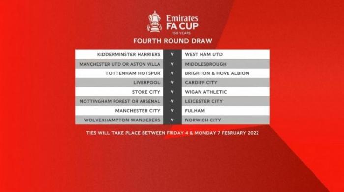 2022年足总杯第四轮抽签结果如下: