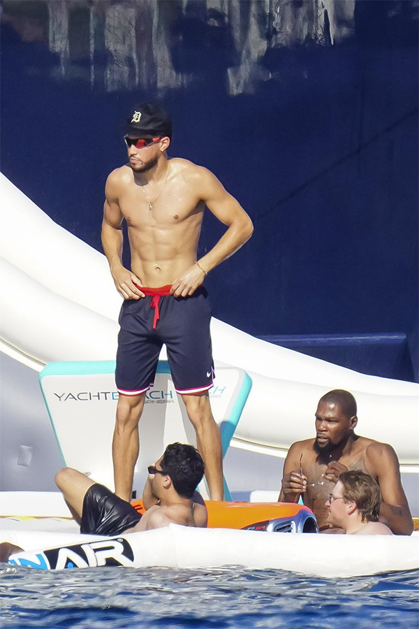 美国男篮夺冠之后,杜兰特和布克在圣特罗佩享受生活,他们在游艇上玩嗨了,杜兰特戴着墨镜晒日光浴以及玩滑梯,布克还与性感美女闲聊。
