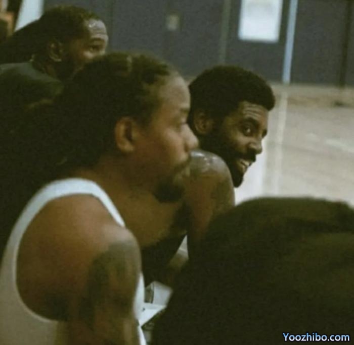 坐在场边休息时,杜兰特边喝水边刷手机,欧文坐在KD旁边并且笑着看杜兰特;杜欧与特雷-杨、奥拉迪波等球员一起训练,欧文心情舒畅乐开怀。