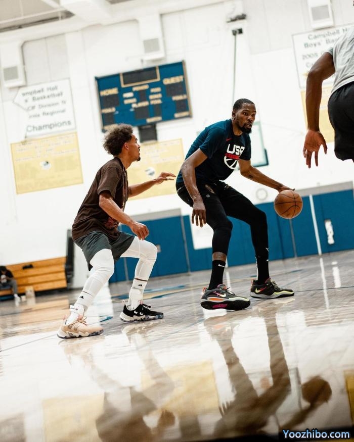 杜兰特身穿美国队训练服,欧文则是身穿背心和短裤,训练赛期间,杜兰特持球背打特雷-杨、欧文持球突破拉杆上篮,在球场上篮网双星相互沟通并且一起防守对手;很明显,杜兰特和欧文的关系依旧很亲密,粉碎了两人的不和传闻。