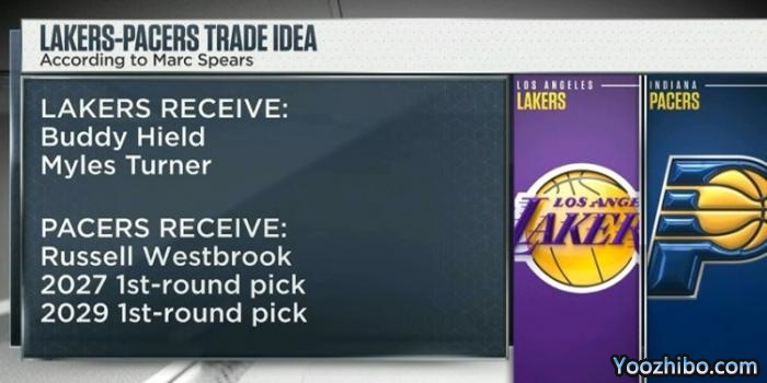 湖人一直想要交易威少并且引援欧文,貌似交易很不顺利;不过除了欧文,希尔德和特纳也是湖人潜在的引援目标;名记Marc Spears列出一笔湖人与步行者的交易方案,具体方案为湖人送出威少、2027和2029年的首轮签,从步行者换来希尔德和迈尔斯-特纳。