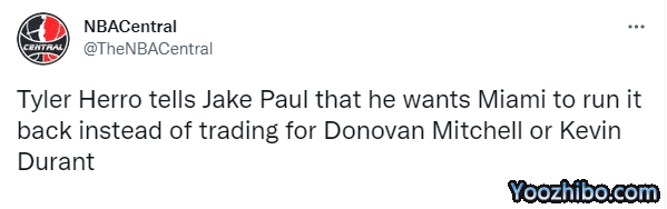 在节目中被问到:如果你是热火的总经理,你会在今夏做什么?希罗回应:相比于球队交易来杜兰特或米切尔,我更愿意球队保持现有的阵容,把所有人都留下来。我们曾离总决赛只差一场胜利。