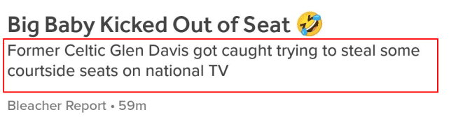 篮网和绿军一战冲上全美热搜的第一位,杜兰特轰下37分6篮板8助攻,解锁25000分里程碑,塔图姆轰下54分,生涯4次50+追平伯德,并列绿军队史第一,最终绿军以6分优势取胜。值得一提的是就在这场比赛中的场边尴尬一幕,也一度冲到全美热搜的第四位。36岁的绿军旧将格伦-戴维斯偷占球迷座位刷爆美媒。
