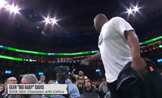 格伦-戴维斯身穿一件印有“尊重LOGO”的凯尔特人T恤前来观战,去年,他曾对欧文脚踩凯尔特人LOGO一事表达不满,并在欧文脚踝受伤后表示:“欧文踩凯尔特人队标时,用的就是这只脚”。他的言论引起很大的争议。