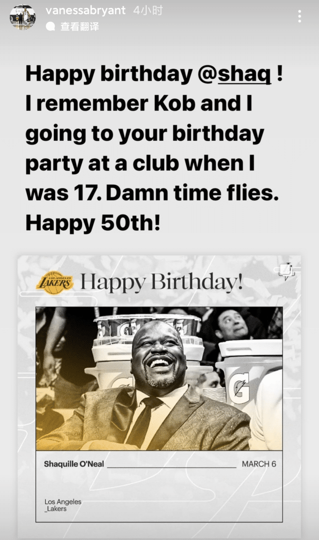 前NBA球星“大鲨鱼”奥尼尔迎来了50岁生日。洛杉矶湖人官方晒图祝奥尼尔生日快乐,科比遗孀瓦妮莎也转发了这一动态,并配文写道:“生日快乐!沙克(奥尼尔)!我记得Kob(科比)和我去一家俱乐部参加过你的生日派对,当时我才17岁。时光飞逝,50岁快乐!”
