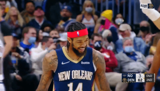 首节比赛,英格拉姆没有得分进账,鹈鹕第一节19-35落后多达16分;第二节英格拉姆手感滚烫,6分钟6投5中高效轰下14分4助攻,上半场更是投进中场超远压哨三分,随手一抛便投进神仙球,如此一球太罕见,此时英格拉姆忍不住咧嘴大笑,队友冲过来和他一起庆祝,半场打完鹈鹕57-62落后5分。