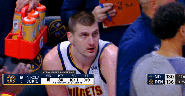 加时赛,约基奇强打得分,麦科勒姆突破上篮、英格拉姆急停中投,琼斯抢断反击,鹈鹕6-0领先4分;莫里斯三分止血,戈登二次补篮,关键时刻,英格拉姆进攻犯规,莺歌踩线失误,最终掘金138-130加时拿下胜利,约基奇轰下超级三双,英格拉姆关键时刻连续犯错。