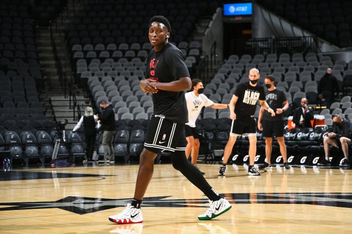 热火生涯至今,奥拉迪波仅出战4场比赛,场均上场27.8分钟能够拿到12分3.5助攻3.5篮板,今天热火客场对阵篮网赛前,奥拉迪波在巴克莱中心球馆进行了训练。