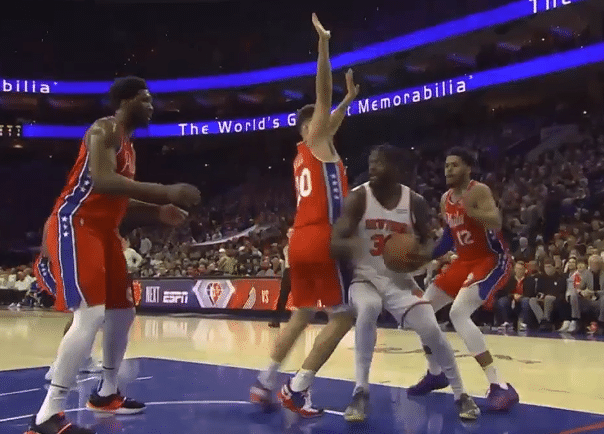 哈登连续得分帮助76人追分,但是防守端他们却没有能够很好地限制住尼克斯,恩比德不满裁判吹领到技术犯规,哈登三分命中,富尼耶造犯规两罚全中,尼克斯保持着10分左右的领先优势,哈登突破得手,恩比德造犯规两罚全中,哈里斯反击一条龙上篮命中,半场比赛打完,尼克斯62:55领先76人。上半场的比赛哈登18分钟11中7得到了19分5篮板3助攻的数据,恩比德18分钟6中3得到了13分9篮板的数据,米尔萨普的发挥可以说是灾难性的,6分钟2失误1犯规没有得分,尼克斯这边巴雷特19分,兰德尔16分。