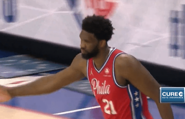 在第三节,哈登和恩比德也来了一次直接的连线。恩比德为哈登做挡拆,随后顺下来到篮下,哈登则后撤到三分线外佯装出手三分。看到恩比德已经在篮下,哈登直接传球,恩比德心领神会,接球轻松打成2+1。现场球迷也非常开心,双星连线,这是他们最愿意看到的。
