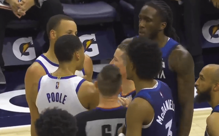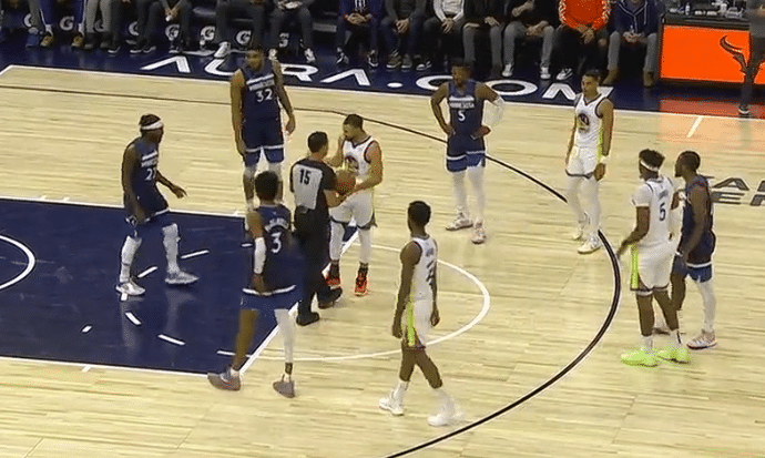 下半场的比赛开始后,勇士并没有打出太有效的反击,三节打完森林狼依旧领先9分,末节比赛勇士进攻端连续不中,森林狼一波10:3的小高潮打停勇士,安德森与普林斯发生冲突,两发生争吵,普林斯用手指指在了安德森的脑袋上,普林斯技术犯规。暂停回来里德劈扣得手,库里上篮帮助勇士打破得分荒,普林斯中投得手,比斯利三分命中,6分钟落后19分,勇士再次暂停,随后勇士收兵了,库里和维金斯都下场了,比赛也是没有什么悬念,勇士输给了森林狼,库里空砍34分,唐斯39分。