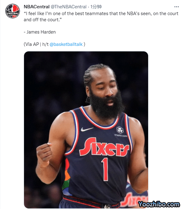 到目前为止,76人3连胜,37胜23负排名东部第三,根据赛程安排,哈登将在明天迎来76人主场首秀,对手是尼克斯。