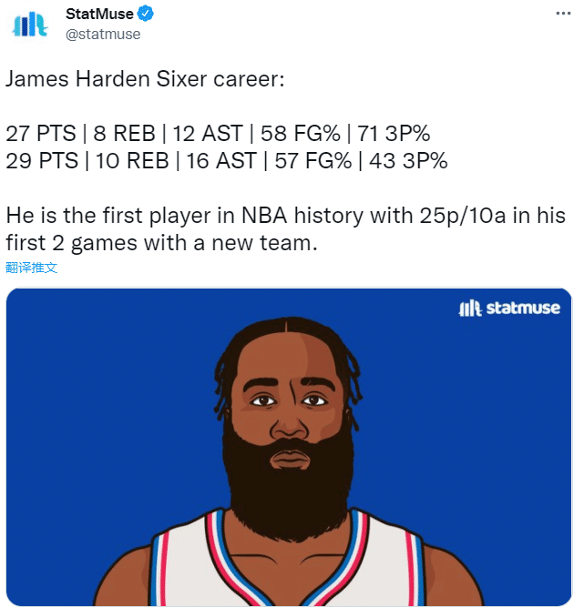 第五、哈登成为76人队史第三位单场轰下25+15+10的球员,另外两位是张伯伦(4次)和巴罗斯(1次)。