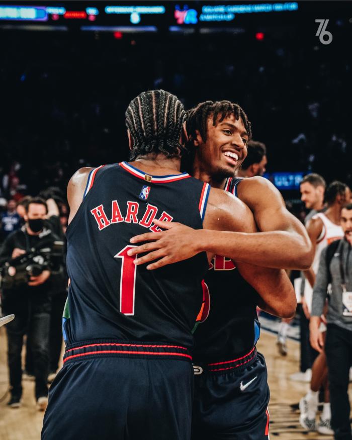 接受采访时哈登表示他的身体状态很好,和恩比德一起打的的感觉很舒服。