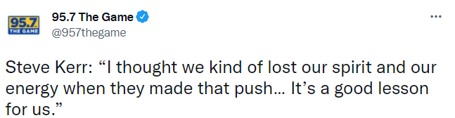 勇士扎心一战引热议,勇士官推第一时间晒出全场比分,发推写到:不是我们的夜晚。
