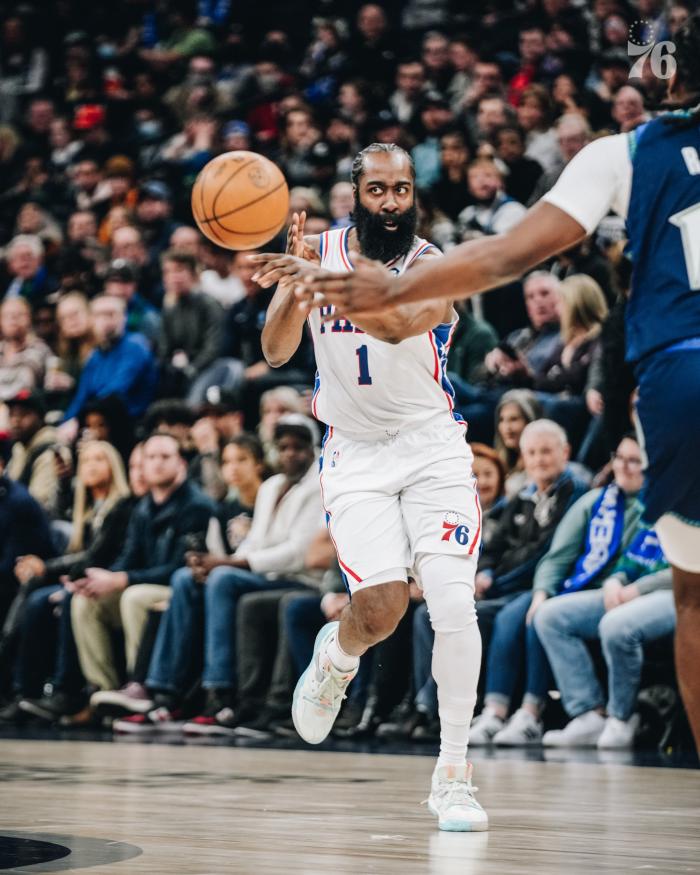 178直播02月26日讯 ,76人客场31分大胜森林狼,哈登全场出战35分钟12投7中、三分7中5、罚球9中8拿到27分12助攻8篮板,在场正负值高达+35,全队第一;哈登大秀招牌后撤步三分,两记3+1太不讲理,哈登首秀惊艳,末节连续7分终结比赛;哈登一场比赛的3分命中数追平西蒙斯76人生涯命中总数。