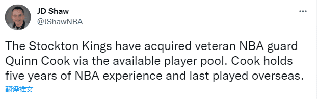 湖人旧将库克前往发展联盟