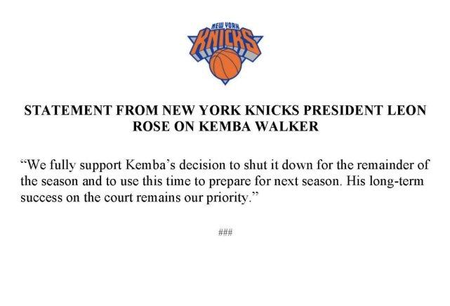 随后,尼克斯总裁里昂-罗斯发布球队声明,写道:“我们完全支持肯巴(沃克)不出战本赛季余下比赛的决定,并利用时间来备战下个赛季。他在球场上的长期成功,仍是我们的首要任务。”这说明了不打余下比赛,应该是沃克提出的。名记Smith认为尼克斯还不如买断沃克,让他去其他队打球。