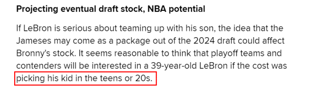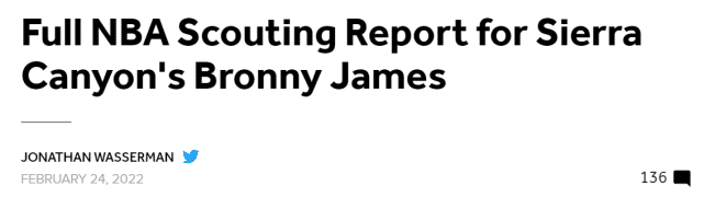 178直播02月24日讯 ,知名美媒Bleacher Report公布了詹姆斯大儿子布朗尼的球探报告,报告解析了布朗尼的传球、投射、防守以及NBA前景,并公布了他的三个NBA选秀模板,詹姆斯前队友球哥(朗佐-波尔)是其中之一。