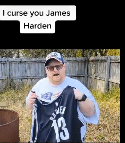 该篮网球迷名叫Frank Fleming,拥有推特认证账号,粉丝10.9万;Frank Fleming先是拿着哈登13号球衣,冲着镜头多次重复诅咒哈登,之后点着哈登的球衣并且扔进铁桶中,最终哈登的篮网13号球衣被焚烧。