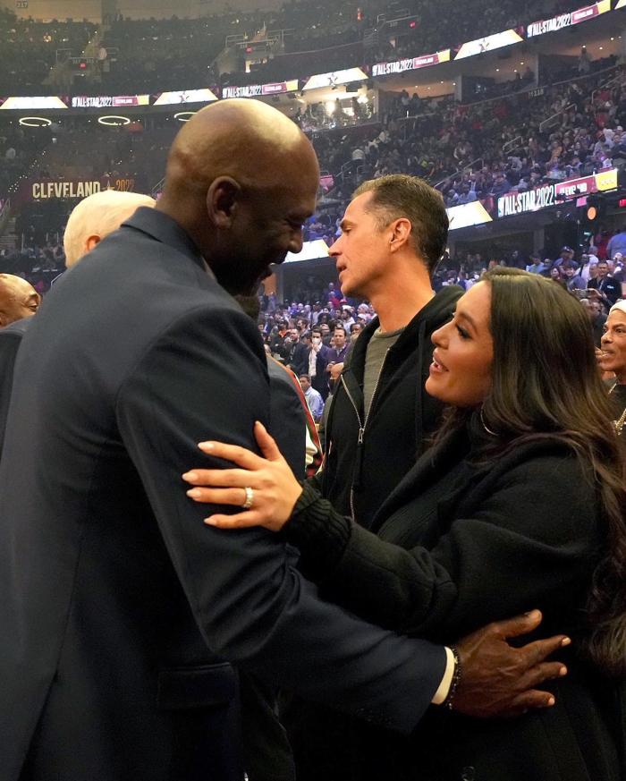顺便提一下,科比遗孀瓦妮莎来到现场,为保罗颁发以科比+GIGI名字命名的WNBA宣传奖;乔丹与瓦妮莎见面寒暄。
