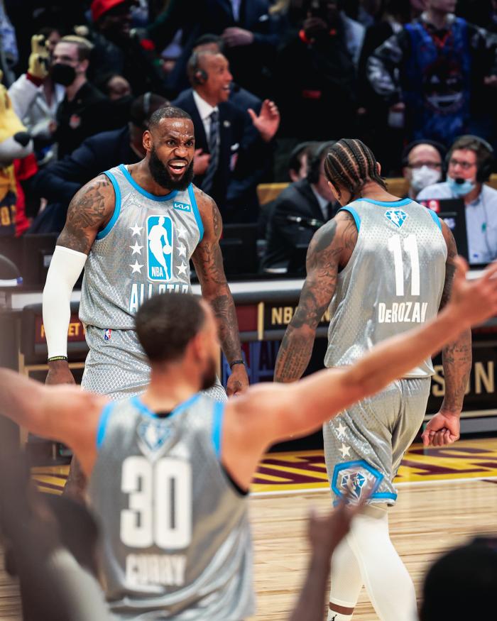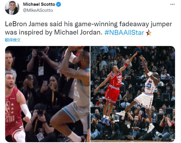 今年全明星正赛,库里无疑是全场最大赢家,而詹姆斯带队延续不败纪录,自从全明星改制后,詹姆斯队5胜0负统治全明星赛;赢球赛后,詹姆斯表示他最后一投绝杀球的灵感来自乔丹,老詹还说:我一直想像他(MJ)一样成长。
