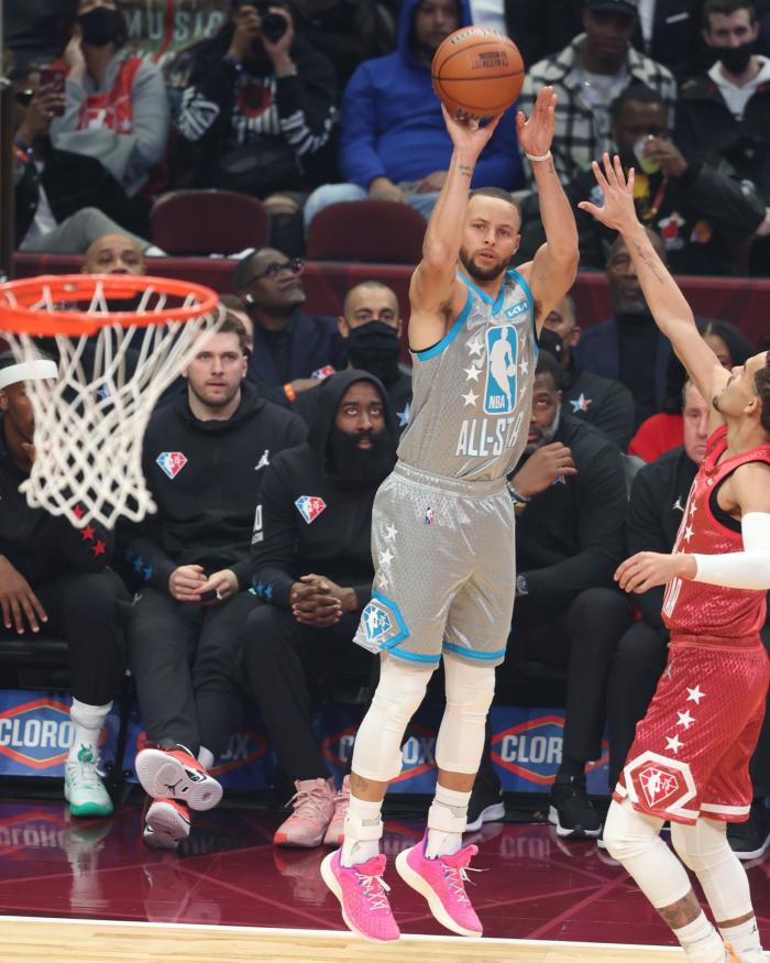 第二、库里全明星47记三分超越哈登和詹姆斯,成为全明星赛历史三分王